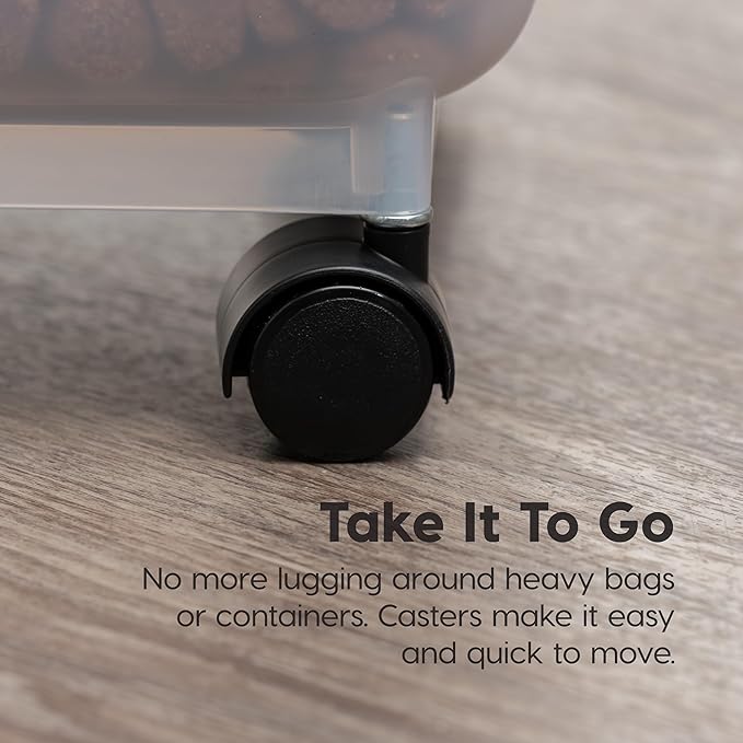 IRIS USA Airtight Dog Food Storage Container, WeatherPro, Up to 40 lbs, Removable Wheels, for Dog Cat Bird and Other Pet Food Storage Bin, Keep Fresh, Translucent Body, Made in USA, Clear/Almond