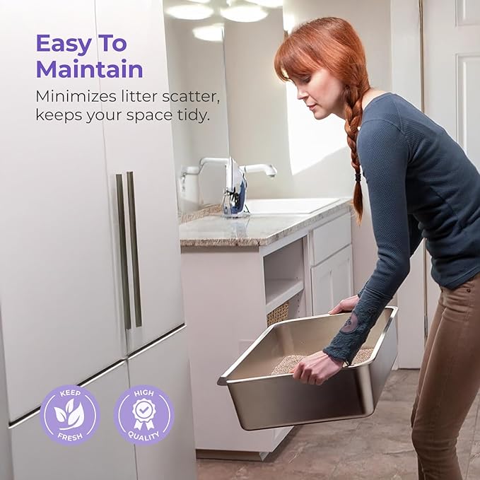 - Quick-Clean Nonstick Surface: This stainless steel litter box has a smooth, nonstick interior that keeps waste from sticking; Designed by cat owners who value cleanliness and speed