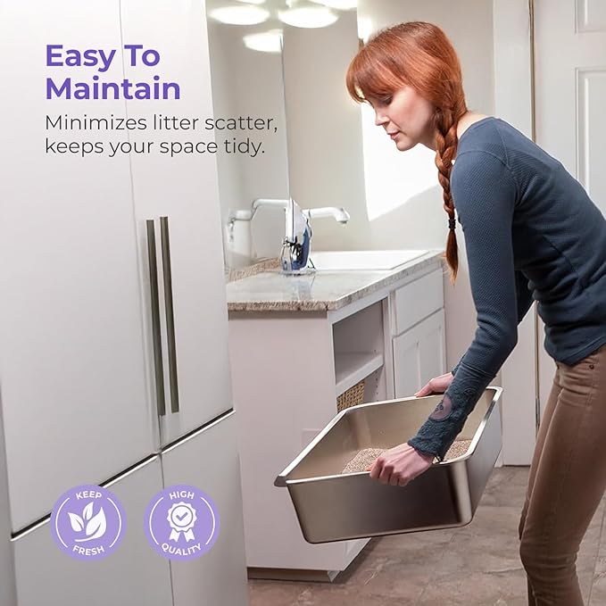 - Long-Lasting Durability: Crafted from stainless steel with Teflon coating; this metal cat litter box resists rust, odor, and stains; built for reliable performance and long-term everyday use