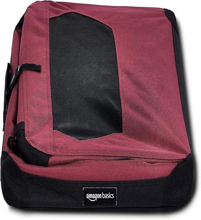 Amazon Basics Folding Portable Soft Pet Dog Crate Carrier Kennel, 26 x 18 x 18 inches, Red