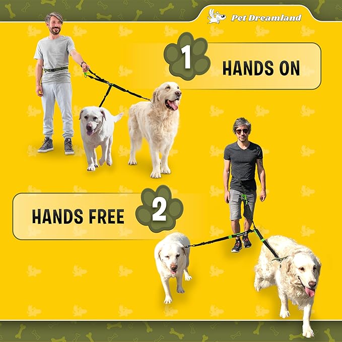 Pet Dreamland Exquisite Hands Free Leash for Two Large Dogs. Premium Quality & Versatile Waist Leash for Dog Walking No Tangle. You Will Absolutely Love This Amazing 2 Dog Gear (Black & Green)