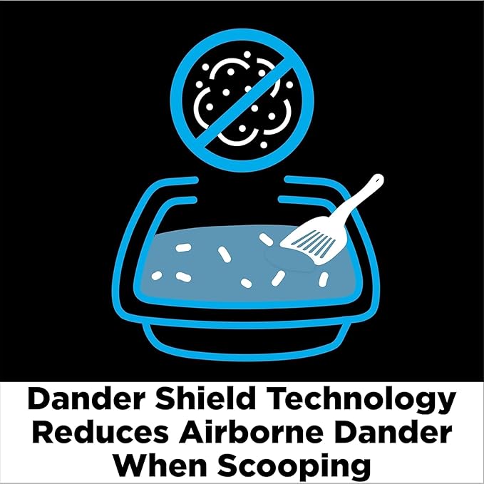 - NO CLOUD OF NASTIES: whatever happens in the cat’s litter box, stays in the litter box. The Dander Shield Technology in this cat litter helps reduce airborne dander when scooping, making litter box cleanup easy