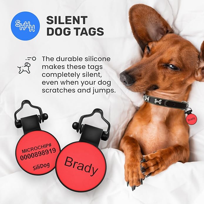 - STEALTH MODE: Silidog tags are so silent, you'll forget they're even there. It's like having a ninja for a dog - stealthy and deadly (well, maybe just stealthy and drooly, but you get the idea). No more jingling tags that wake you up and drive you nuts. You’ll only hear your pup’s snoring from now on.