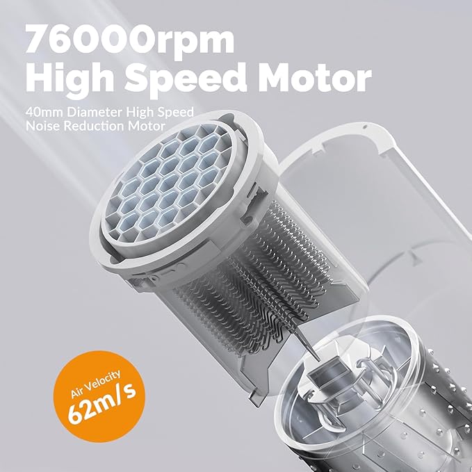 - [ High Velocity Dog Hair Dryer ] New Design Self Developed 40mm Diameter high speed DC brushless motor, Revolutionary high 62m/s air velocity 3HP equivalent forceful power,With 4 levels Switchable Temperature(68°F,122°F,149°F,176°F) and 2 Blow Speed,Portable & 1.21ld Lightweight Make hair care for pet at home or traveling easily.