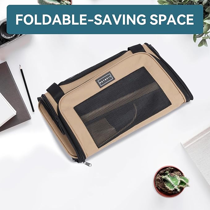PETSFIT Pet Carrier for Cat, Small Dogs, Dog Carrier Airline Approved, TSA Approved Soft Cat Carrier for Travel, Small Animal Carrier for Pets Under 12 Lbs, Khaki