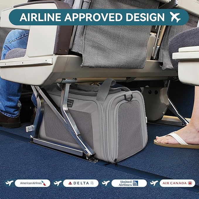 - [Portable & Collapsible] The airline approved cat carrier can also be used as a soft-sided crate for regular outings and vet visits with cats and small dogs, it comes with a removable machine washable cozy mat and a large pocket. When not in use, just unzip it and fold it down into a flat package for storage.