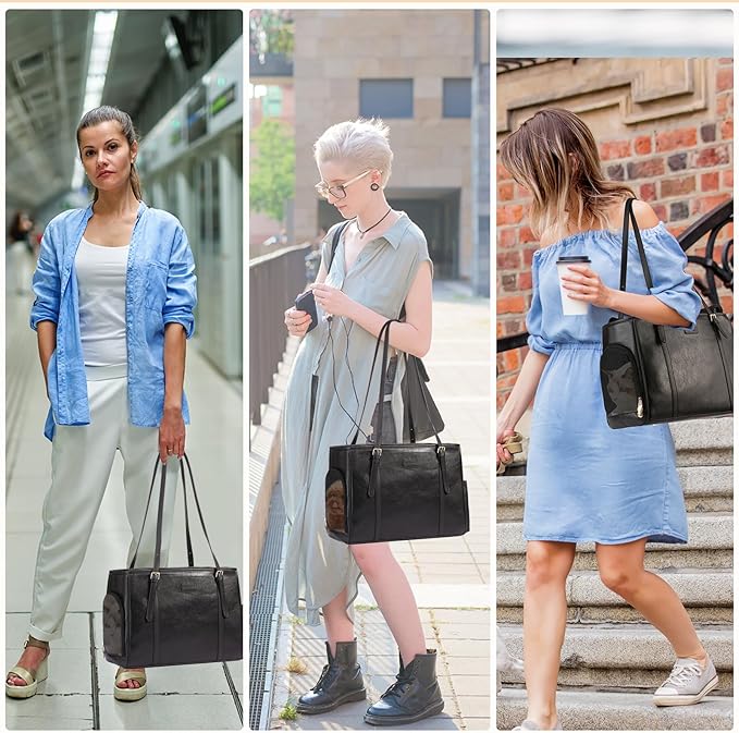 Fashion Dog Purse Pet Carrier Leather Bag for Small Dogs Cats Puppy, Portable Tote Bag Airline Approved Soft-Sided Carriers (Black)