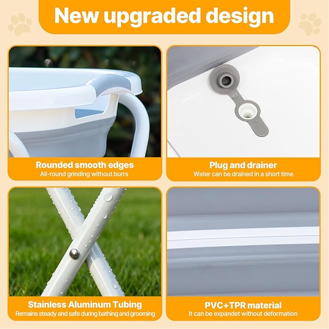 - 【EASY FOLD AND UNFOLD】The dog bathtub can be easily folded up with one hand, easily to transport and save more space during storage.
