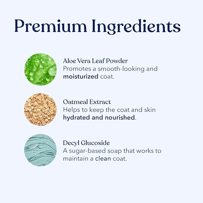 - Calming scent – Our subtle Oatmeal and Lavender fragrance can help calm your pet.