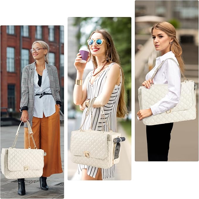 Fashion Dog Purse for Small Dogs with 2 Super-Large Pockets, Holds Up to 10lbs PU Leather Pet Carrier, Cat Carrier, Airline Approved Puppy Purse for Travel (White, Small Size)