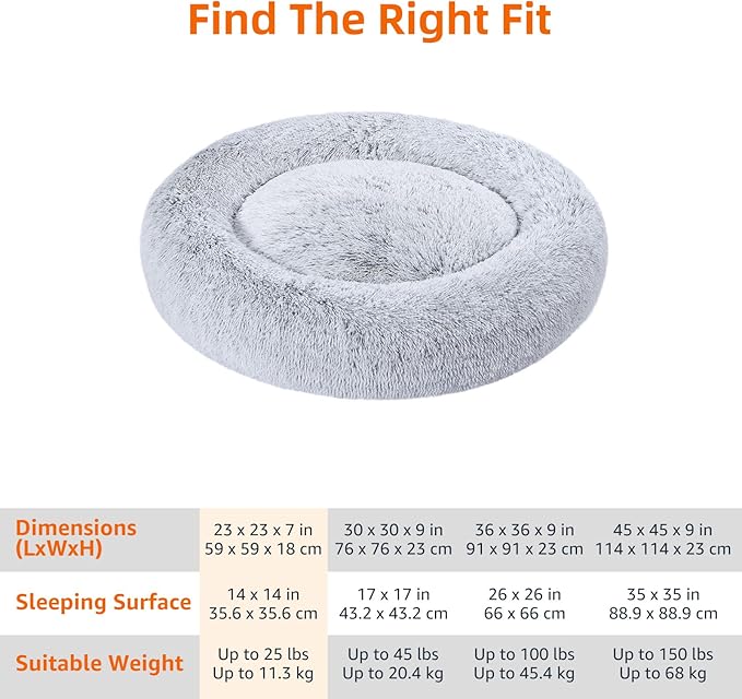 - Round shape and fluffy bolster make the comfortable dog bed perfect for pets who like to burrow