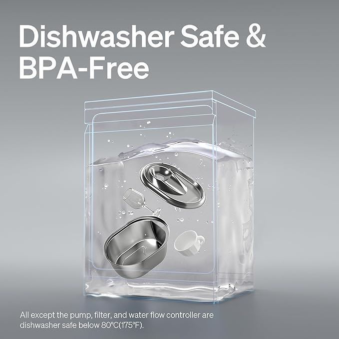 - Durable 304 Stainless Steel & Dishwasher Safe: PETLIBRO cat water fountain made of 304 stainless steel, it is BPA-free, rust and corrosion-proof. Only the stainless steel part can be washed in the dishwasher.