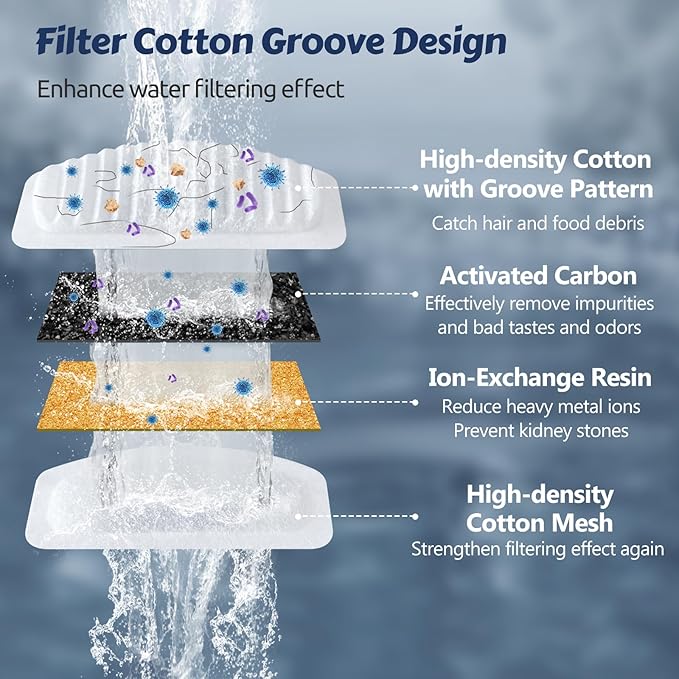 - 😽Best Bang for Your Buck! - ORSDA cat drinking fountain comes with extra 12pcs replacement filters, and 3pcs cleaning brushes. Save "Time and Much Money" for you.