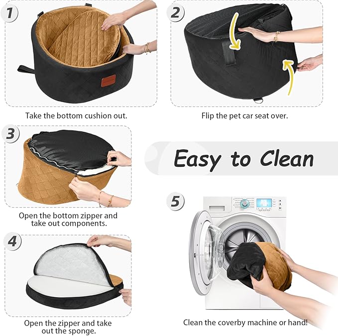 - Convenience: Installing the car seat for dogs in car is extremely simple. It can be used in all vehicles, both front and rear seats. The zipper design inside for easy removal of the foam for cleaning the cover by hand or machine, and easy reassembly