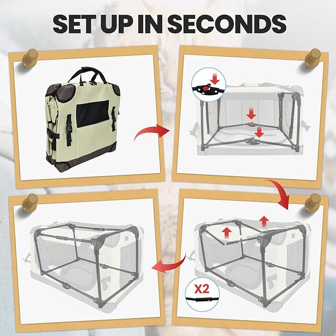Large Cat Carrier for Car Travel, Soft Sided Collapsible Pet Carrier for Outdoor and Indoor Uses, Roomy Extra Large Cat Carrier for 2 Kittens or Puppies Up to 50lbs (Brown)