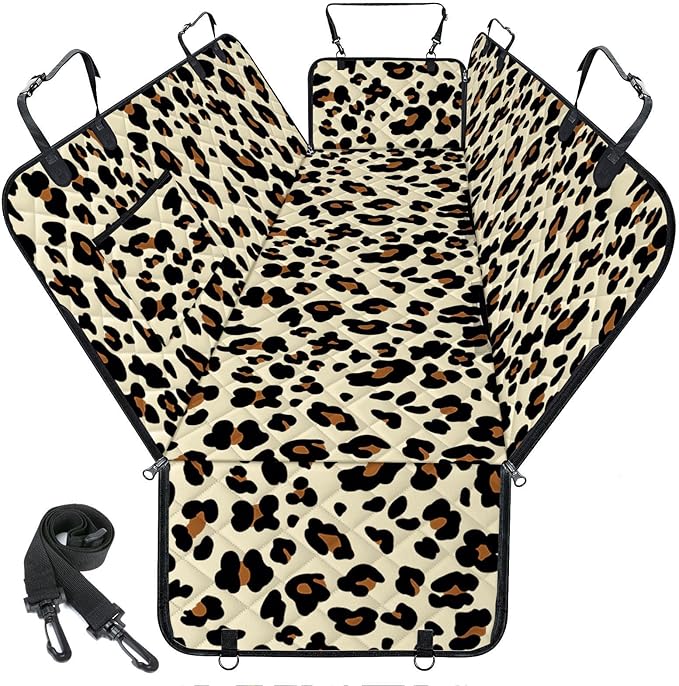 Waterproof Dog Car Seat Cover for Back Seat - Durable, Scratch Proof Pet Hammock with Nonslip Design & Storage Pockets, Fits Cars, SUVs, Trucks- S, Leopard/Black
