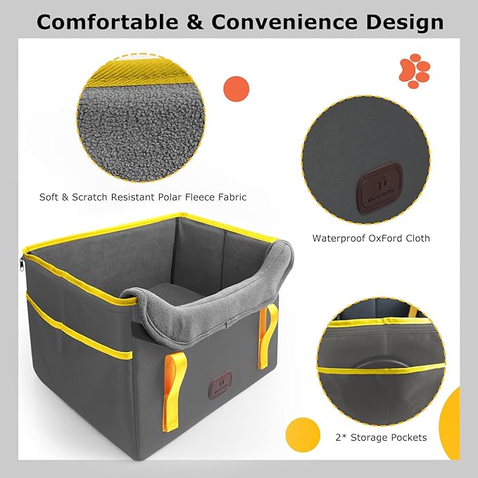 - 【Easy to Install and Fold】Using our pet booster seat is simple and quick. The adjustable straps and safety belts enhance safety, and the seat can be secured in place by simply fastening the car's safety belt. Thanks to its innovative design, the dog seat for car can be folded flat for easy carrying and storage.