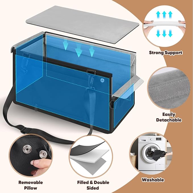 - Thoughtful Design: Dog car carriers for small dogs have two side pockets, which can store some pet supplies, and one of which is equipped with a zipper, so you don't need to change the pet travel bag when you get off the car to go to other places. The pet car bed has additional removable front pillow for the dog to be able to rest his head. The separate pillow insert is super soft. Pet booster car seat is equipped with a supportive cushion which is double-sided, one side is warmth, the other side is dry and breathable,can be used all year round.