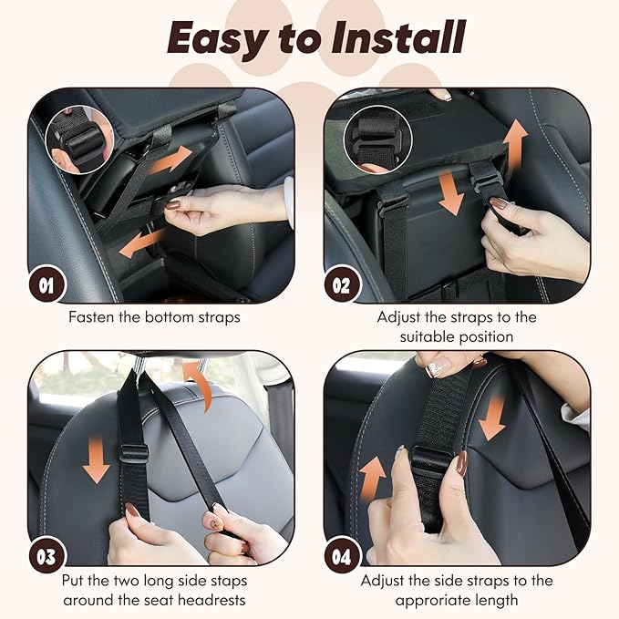 - Triple Safety Protection: Center console dog car seat is equipped with two adjustable safety belts that can be fixed on the driver's and passenger's seats. The bottom has four elastic straps, which can be attached horizontally or vertically to accommodate different car models, and to make sure the dog armrest booster seat install the middle console closely. The interior of the car seat for dogs has a safety leash that can be attached to a pet collar, chest strap or carrier to keep your pet safe.