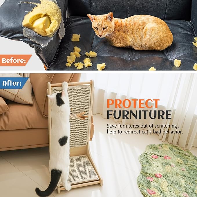 - EASY CARE & ASSEMBLY: The scratcher comes with unique designed wooden structure, follow the manual simply assemble it within 5 minutes.