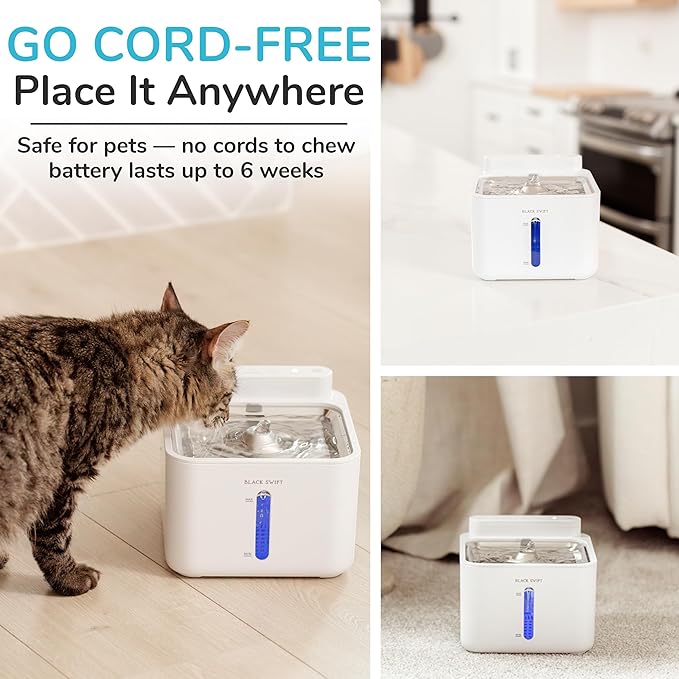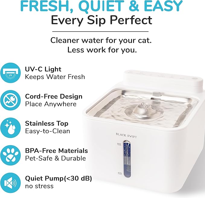 BLACK SWIFT UV-C Clean Cat Water Fountain – 108 oz Stainless Steel, BPA-Free Cordless Pet Fountain with Quiet Pump & 4-Stage Filter