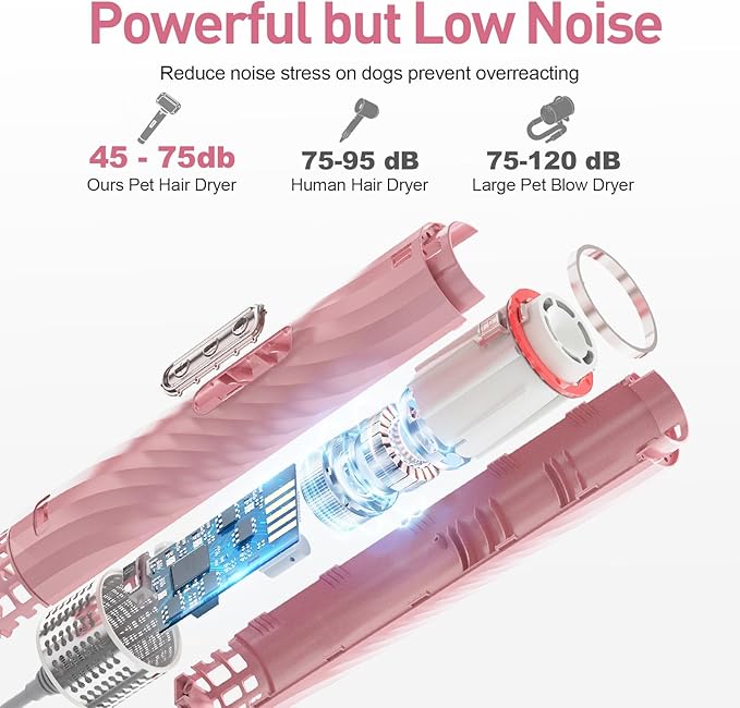 Discala Dog Dryer, Dog Grooming Blow Dryer Kit with Slicker Brush for Pet, High Velocity Blow Dryer for Dogs with Adjustable Speed and Temperature for Pet Grooming Supplies and Home Use, Pink
