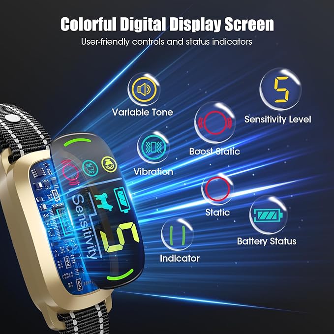 - Advanced AI Chip & Instant Bark Detection: Upgraded anti barking device with smart AI technology and voiceprint recognition. The bark collar for dogs responds in just 0.01 seconds, filters out other noises, and prevents false triggering for precise and safe bark control