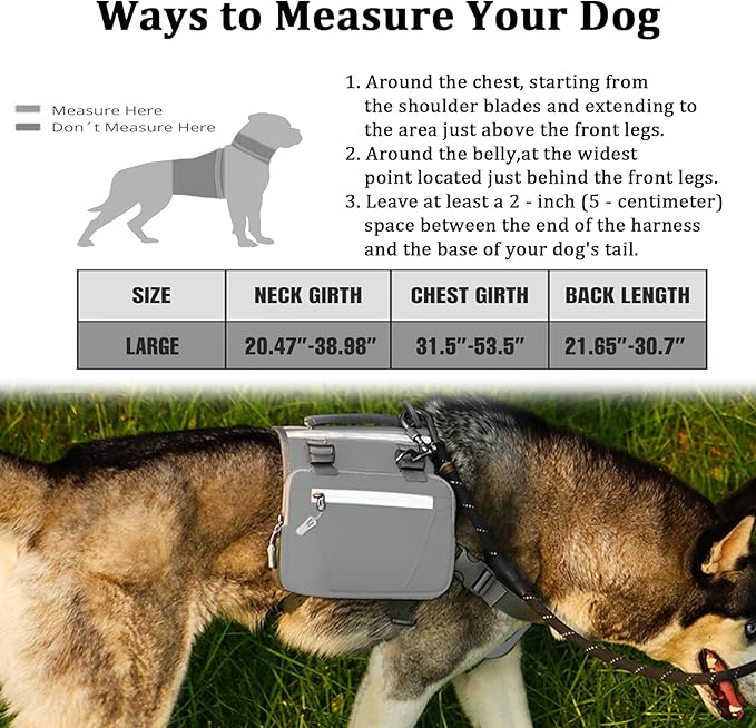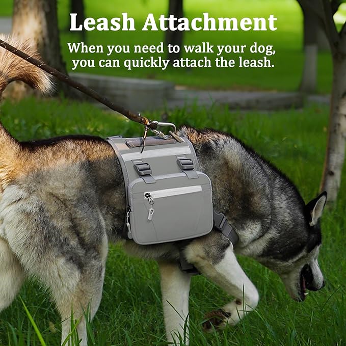 Dog Backpack - Large Dog Backpack Harness for Outdoor Adventures, Hiking Dog Backpacks with Adjustable Straps - Durable Dog Packs for Hiking, Comfortable Backpack for Dogs to Wear,Grey