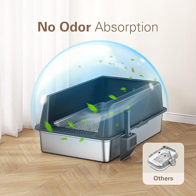 Zarler XXXL Stainless Steel Litter Box, Extra Large Cat Litter Boxes 27.8" L x 20" W x 12.9" H, Jumbo Metal Litter Box with Lid for Multiple Cats, High Sided, Non-Sticky, Anti-Urine Leakage (Black)