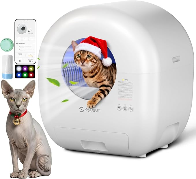 - WHAT'S INCLUDED: 1 EYESUN Automatic Self-Cleaning Litter Box for Multi-Cat Households, designed for both beginner and experienced cat owners. Also included are garbage bags,Deodorizer,Cleaning Brush and a user-friendly manual. Plus, enjoy peace of mind with a 24-month worry-free warranty and friendly customer support available 24/7 at support@eyesun.net.