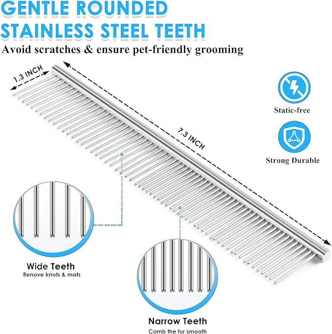 - 3-PIECE GROOMING KIT FOR LONG COATS – Includes large slicker brush, double-sided undercoat rake and stainless steel comb with wide and narrow teeth. Made for long-haired and double-coated dogs and cats; not recommended for short-haired or hairless pets.
