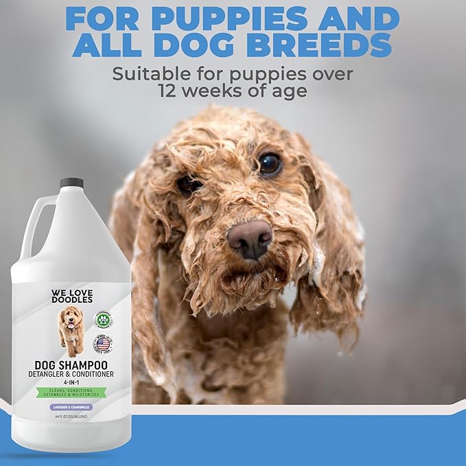 Dog Shampoo Half Gallon - Cleans, Conditions & Detangles, Goldendoodles, Poodles, & Doodle Shampoo - for Matted Pet Hair - Sensitive Skin Wash for Puppies - Made in The USA, 64OZ (Lavender)