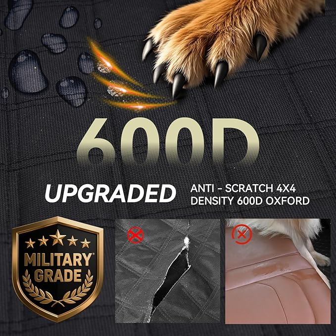 - Waterproof & Anti-Slip Design:Crafted using an advanced heat-pressing process with 7 layers of materials, including 600D Oxford fabric and 210D Oxford fabric, Our back seat cover provides superior waterproof protection. The anti-slip bottom ensures your dog won’t slide off during the ride.