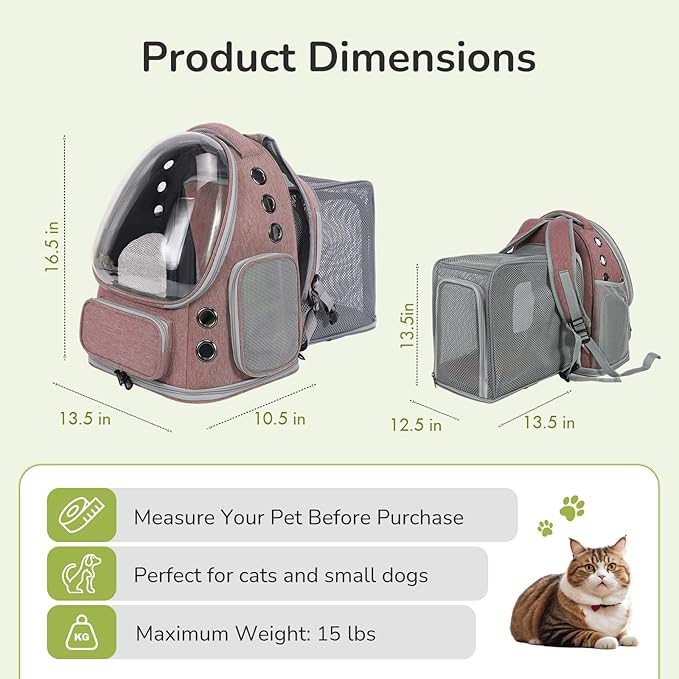 - Expandable Design for Extra Space:Expand the backpack to 23.5"L x 13.5"W x 16.5"H for added room and airflow. The expandable back creates a spacious, stress-free environment for your pet, reducing anxiety and ensuring comfort during travel.