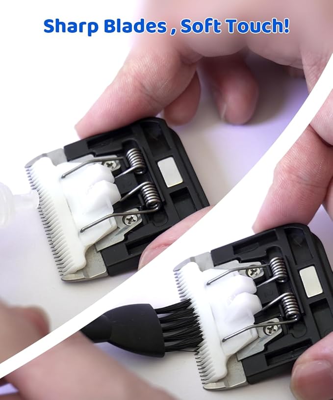 - 【Lubricating Oil Included – Hidden at the Bottom】A bottle of lubricating oil is included inside the white plastic box at the bottom of the package. Apply a few drops before and after each grooming session to maintain blade sharpness and ensure smooth performance. (Compatible with standard sewing machine oil for future use.)