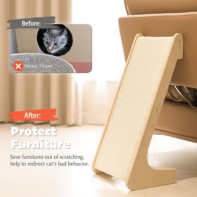 - NATURAL SISAL: Features safe & natural sisal mat, this scratcher is ideal for cats who love to scratch. It helps keep your cats’ claws healthy while engaging them in active play.
