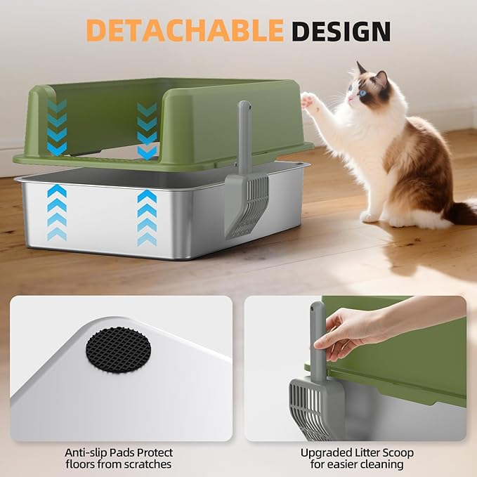 - 【Secure Buckle Connection】The stainless steel cat litter pan is tightly connected to the high wall by a buckle, more stable connection, and no need to worry about the shell falling off