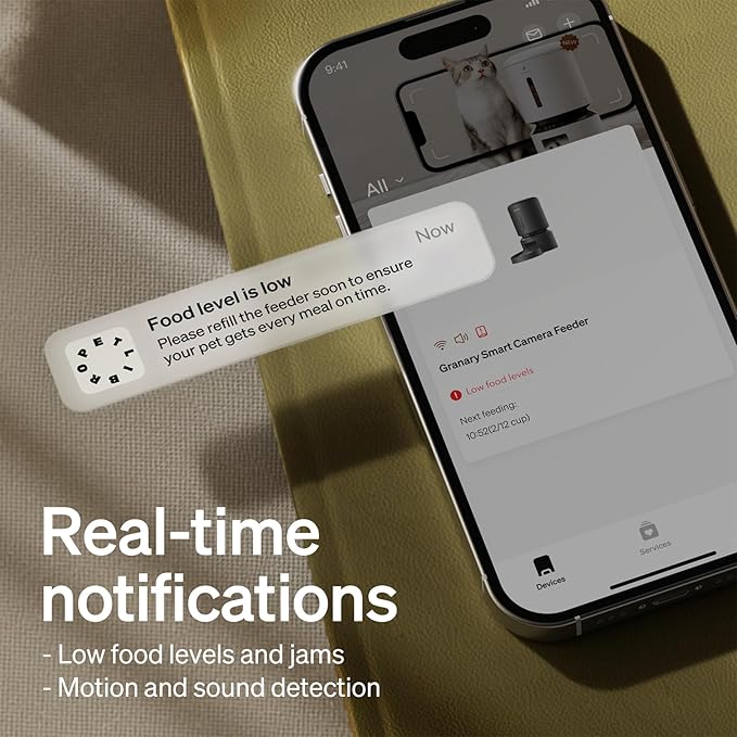 - 1080P HD Camera with Night Vision & Two-Way Audio Interaction— Always Stay Connected: Stay close to your pet wherever you are with a built-in 1080P HD camera featuring night vision. Watch your furry friend in real time through PETLIBRO App, while feeding moments are automatically captured and stored for playback. Talk and comfort your pet in real time through two-way audio, or record a personalized 10-second meal call to let them feel your presence even when you’re away.