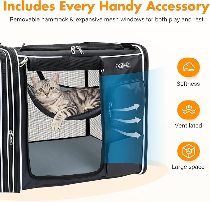 Lekereise Extra Large Cat Carrier Soft Sided, 37" x 18" x 18", Large cat Travel Carrier for 2 Cats with Zipper Locks for Moving Across The Country, Foldable for Storage, Black