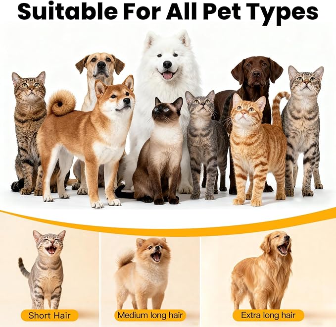 - 🐾【Portable & Easy Store】Pet vacuum grooming kit with a lightweight 3.7lb body, it's easy to store and carry, making it the ideal grooming partner for multi-pet households or travel! The dog hair vacuum with a hose and power cord of 10ft, the operating radius is greatly extended, allowing you to move freely in the living room, balcony, or yard, giving your pet a more relaxed grooming experience