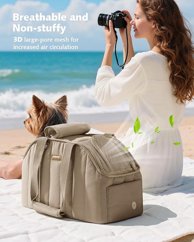 Pecute Dog Purse Carrier, Lightweight Dog Carriers for Small Dogs with Large Pockets, Dog Soft-Sided Carriers up to 9lbs, Pet Carrier for Puppy Cat Rabbit, Suitable for Travel, Subway, Khaki