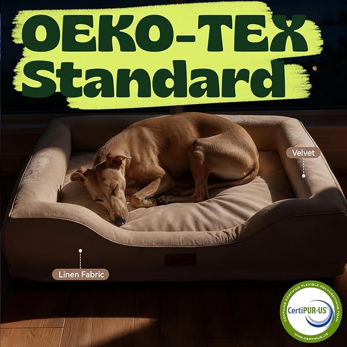- Pet Safe Materials: OEKO-TEX certified super soft velvet fabric and cool gel memory foam provide continuous cooling for the whole summer. The dog bed is designed with a non slip bottom to prevent movement or sliding, keep the the pet bed in position, ensure the safety of elderly dogs.