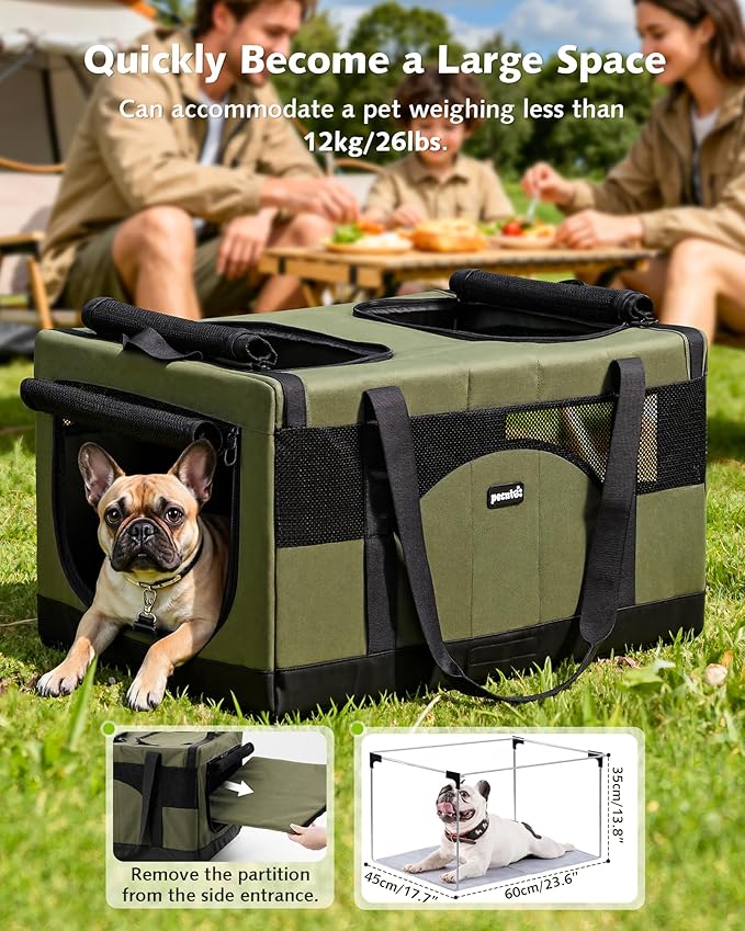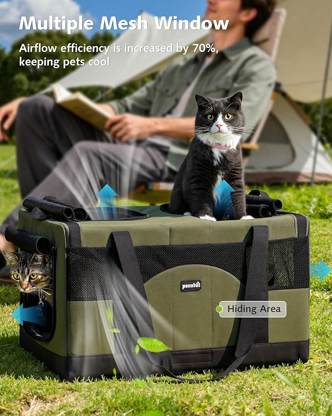 Pecute Cat Carrier for 2 Cats,Dual Cabin Multi Cat Travel Carrier with Removable Divider and Sturdy Frame,Collapsible,Soft,can Hold 20lbs+ for 2 Small Kitten,Medium Dog,Extra Large for Travel,Green