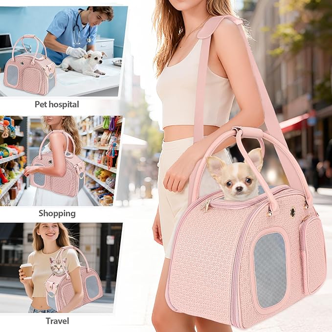 - [Portable Small Dog Carrier Purse] - Lightweight and foldable, Easily folds for compact storage when not in use; The ultimate companion for vet visits shopping trips or daily walks; A perfect mix of fashion and function gifts for pet moms.