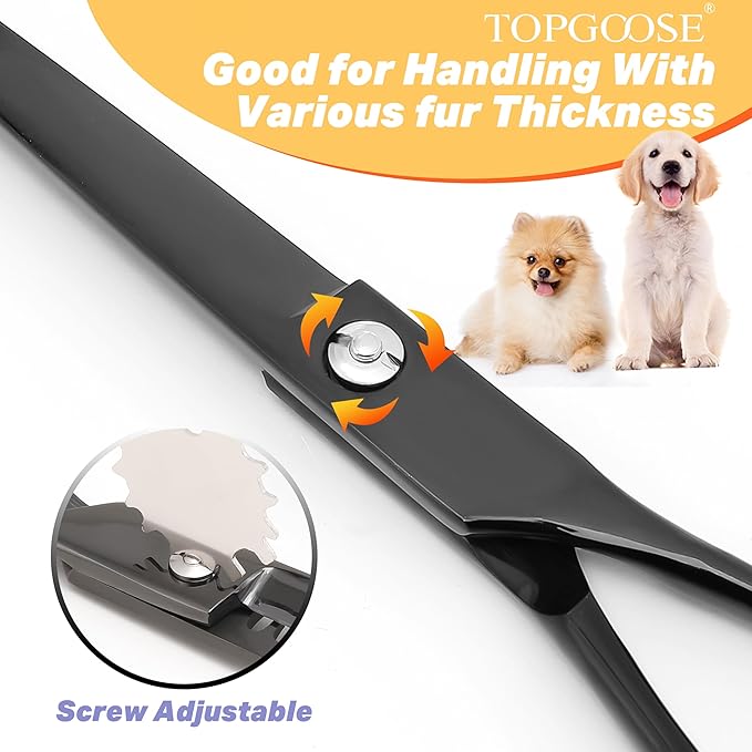 - ✔【Meet Diverse Needs】The 7.5 inch Straight dog scissor is convenient for grooming the sensitive areas such as face, ears, head, tail and so on. Our shear is also equipped with an adjustable screw, making it suitable for various fur thickness.