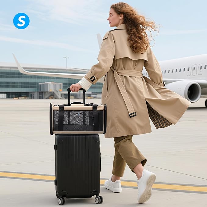 Airline Approved Expandable Pet Carrier for Small Cats, Collapsible Travel Bag with 600D Oxford, Safety Lock Zipper,S