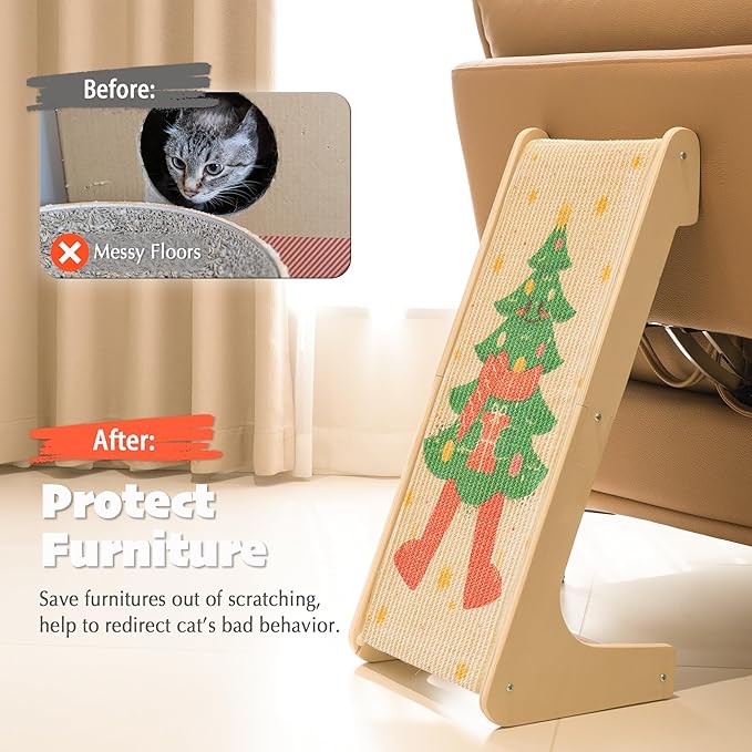 PETKARAY L Shape Cat Scratcher, Sisal Kitty Scratching Ramp, Vertical Scratch Pad for Indoor Cats, 25.2" Furniture Protector with Catnip for Christmas