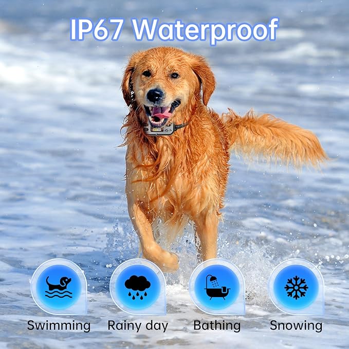 - 【Rechargeable & Waterproof Design】: The dog wireless fence system takes 3 hours to fully charge and can operate continuously for several days. With an IP67 waterproof rating, the wireless dog fence effortlessly handles any environment—whether your dog loves swimming, playing in the rain, or rolling in mud, and regardless of weather conditions like rain, sunshine, or snow. Its rugged, waterproof construction ensures reliable year-round performance, making it the ideal choice for your dog.
