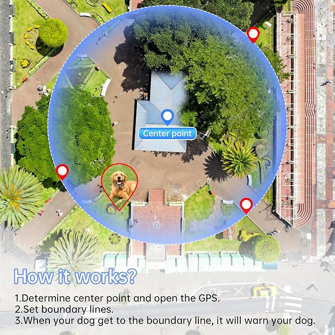 - 【Safe Dog Collar】: Our GPS dog fence employs a humane and effective training method to ensure your pet's safety and comfort. When your dog approaches the set boundary, the wireless collar initiates a progressive series of gentle corrective measures—intervening through sound, vibration, and electrostatic stimulation (1 - 9 levels)—with adjustable intensity tailored to your dog's temperament and size. This step-by-step approach helps your dog confidently master boundary awareness without anxiety.