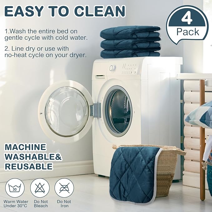 4 Pack Self Heating Cat Pad Self Warming Dog Mat Reflects Body Heat Extra Warm Thermal Pet Pad Washable Dog Cat Bed Crate Bed Mat Blanket(16 x 16 Inch,Blue)